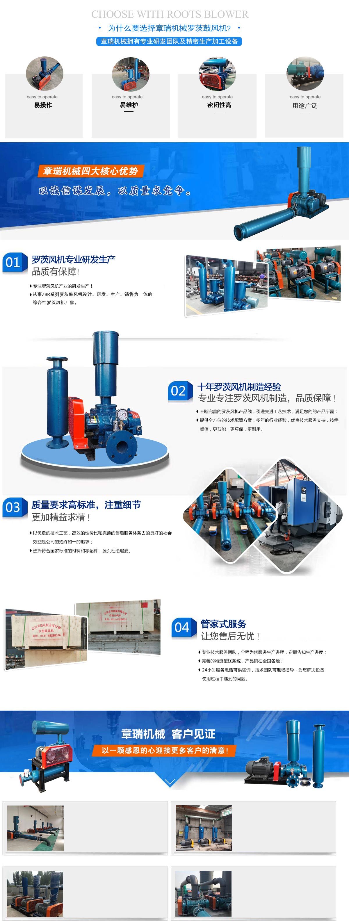 我是污水處理廠家;15年在他們公司采購套羅茨風機設備,他們提供很周到快速的服務, 至今還無故障在車間正常運行。章瑞機械采用先進的技術和精準的加工工藝,確保了風機的...